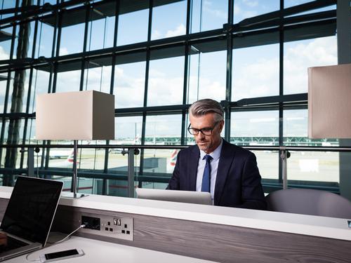Terminal 5. Airside - after Passport Control and Immigration, the lounge is located to the left of Gate A18 in the Main Departure Terminal. Passengers departing from the Satellites will need to access the lounge before proceeding to the Satellite Gates.